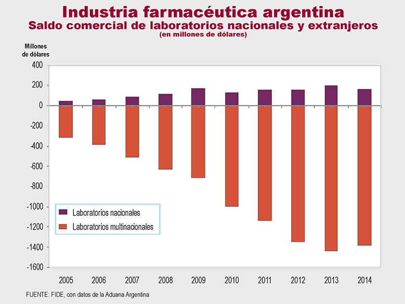 Cabe destacar que la industria farmacéutica argentina es un sector relevante, dinámico e innovador dentro de la industria manufacturera del país: alcanzó al 6,4% del valor agregado de estas actividades en el 2014, registrando un crecimiento anual acumulativo de 6% en unidades y de 11,5% en dólares entre los años 2003 y 2014. Esta dinámica se explica, en gran medida, por la expansión de la demanda de medicamentos en el contexto de una ampliación de la cobertura del sistema de salud a través de la recuperación de los presupuestos de las obras sociales y de programas públicos de salud de amplio alcance, como es el de la extensión del calendario de vacunas.